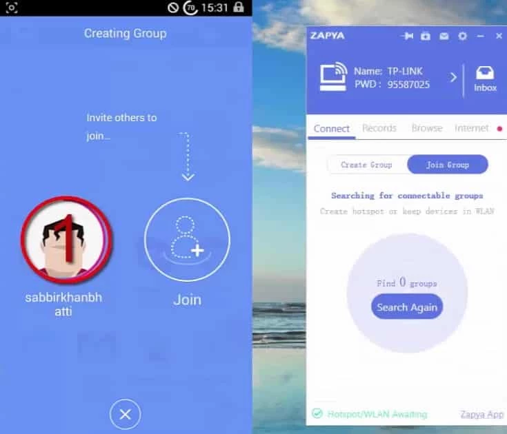 该应用程序可用于创建群组并通过另一台设备加入群组以共享文件。但如果您觉得有点困难,无法创建群组,只需使用二维码选项即可。